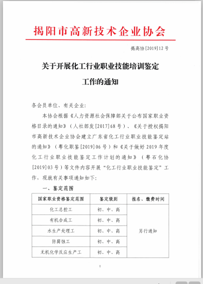 關(guān)于開展化工行業(yè)職業(yè)技能培訓鑒定工作的通知