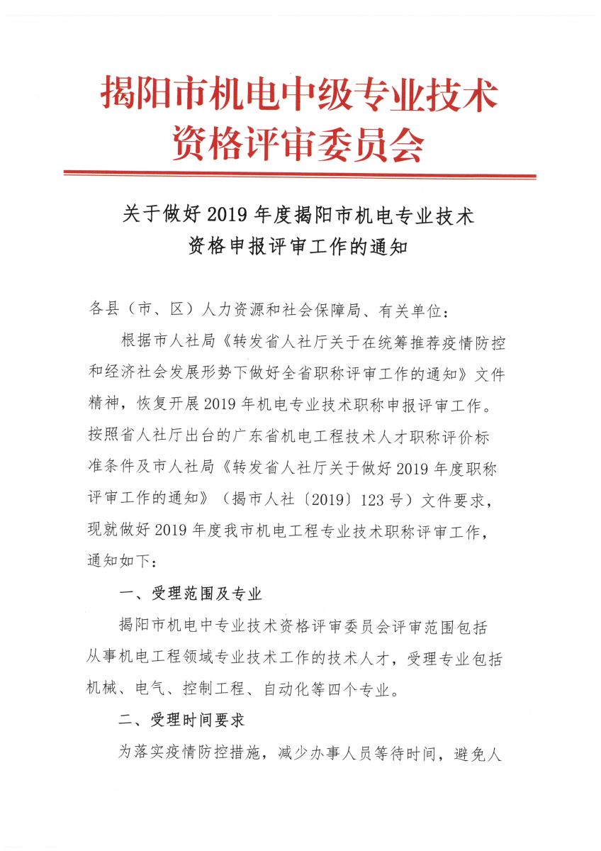 關(guān)于做好2019年度揭陽市機電專業(yè)技術(shù)資格申報評審工作的通知