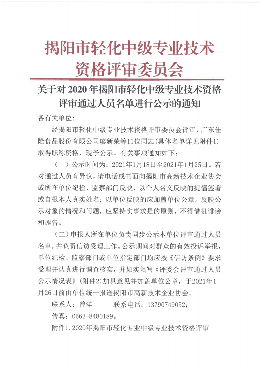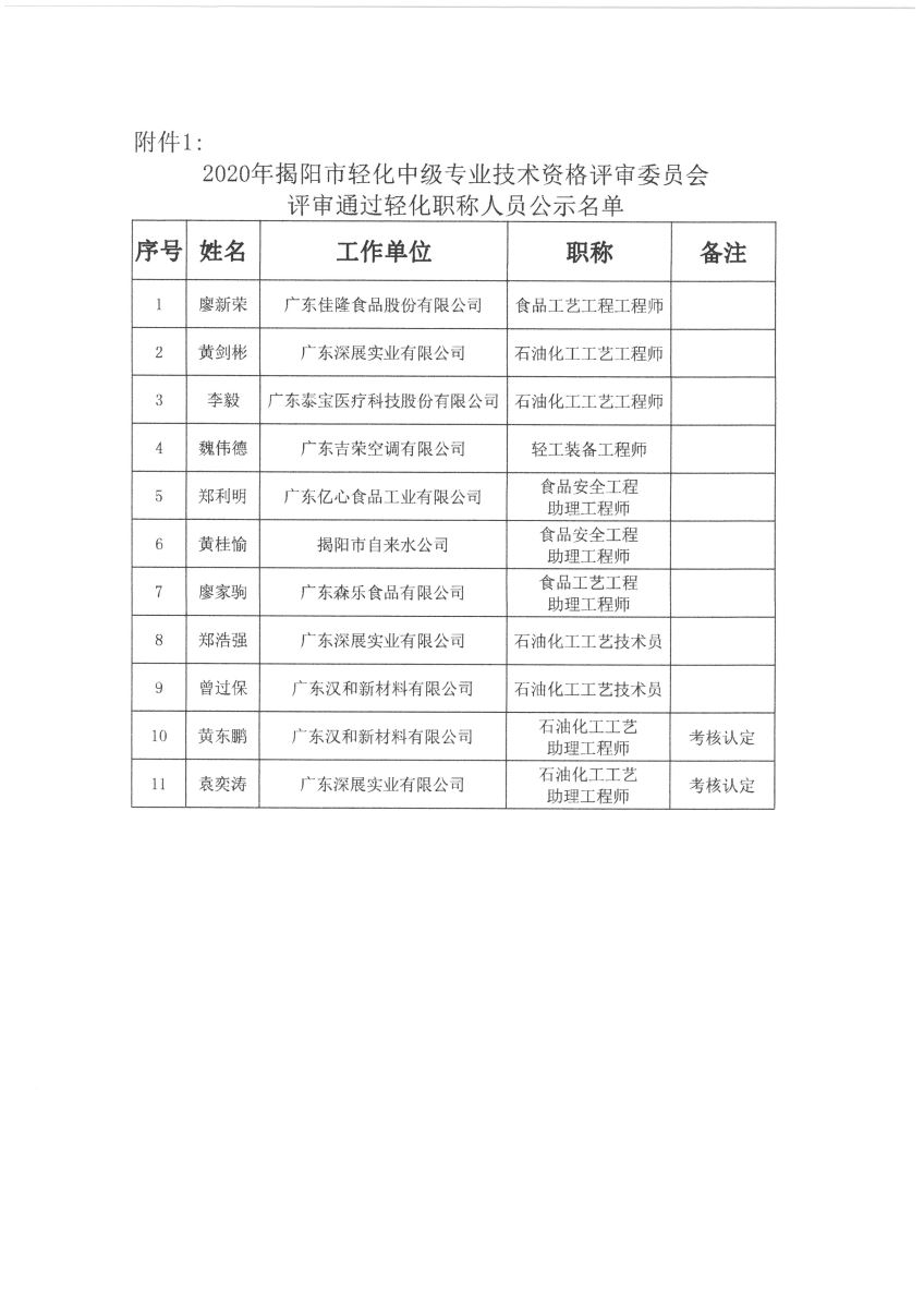 關(guān)于對2020年揭陽市輕化中級專業(yè)技術(shù)資格評審?fù)ㄟ^人員名單進行公示的通知