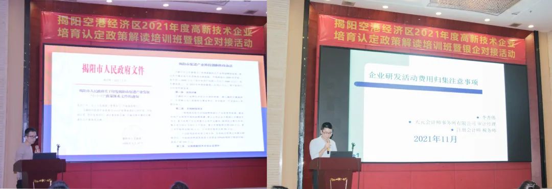 本次培訓(xùn),邀請了市生產(chǎn)力促進(jìn)中心副主任紀(jì)敏、普寧市天元會(huì)計(jì)事務(wù)所有限公司審計(jì)經(jīng)理李普偉等兩位專家分別為參會(huì)學(xué)員作了“高新技術(shù)企業(yè)認(rèn)定申報(bào)業(yè)務(wù)培訓(xùn)”“企業(yè)研究活動(dòng)經(jīng)費(fèi)歸集注意事項(xiàng)”專題培訓(xùn),并分發(fā)了《2021年揭陽空港經(jīng)濟(jì)區(qū)促進(jìn)中小企業(yè)(民營企業(yè))發(fā)展扶持政策匯編》。