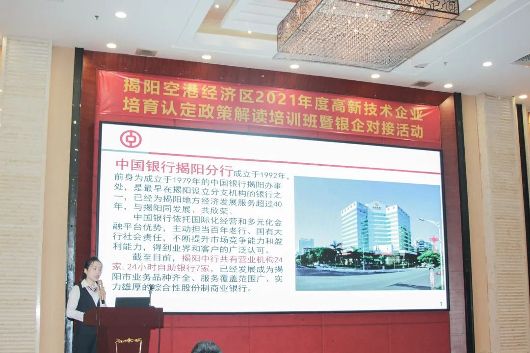 為推動(dòng)上級關(guān)于培育高新技術(shù)企業(yè)的工作部署,優(yōu)化我區(qū)科技創(chuàng)新發(fā)展環(huán)境。11月8日上午,空港區(qū)工科局結(jié)合“我為群眾辦實(shí)事”實(shí)踐活動(dòng),組織開展“揭陽空港經(jīng)濟(jì)區(qū)2021年度高新技術(shù)企業(yè)培育認(rèn)定政策解讀培訓(xùn)班暨銀企對接活動(dòng)”,把學(xué)習(xí)黨史同推動(dòng)工作結(jié)合起來,進(jìn)一步推進(jìn)惠企利民政策落地見效,提升區(qū)內(nèi)企業(yè)和群眾的獲得感、滿意度。本次活動(dòng)由揭陽空港經(jīng)濟(jì)區(qū)工業(yè)信息化和科技局主辦,揭陽市高新技術(shù)企業(yè)協(xié)會(huì)、揭陽市科技金融服務(wù)中心承辦,培訓(xùn)會(huì)吸引了60多家企業(yè)近百名從業(yè)人員參加。