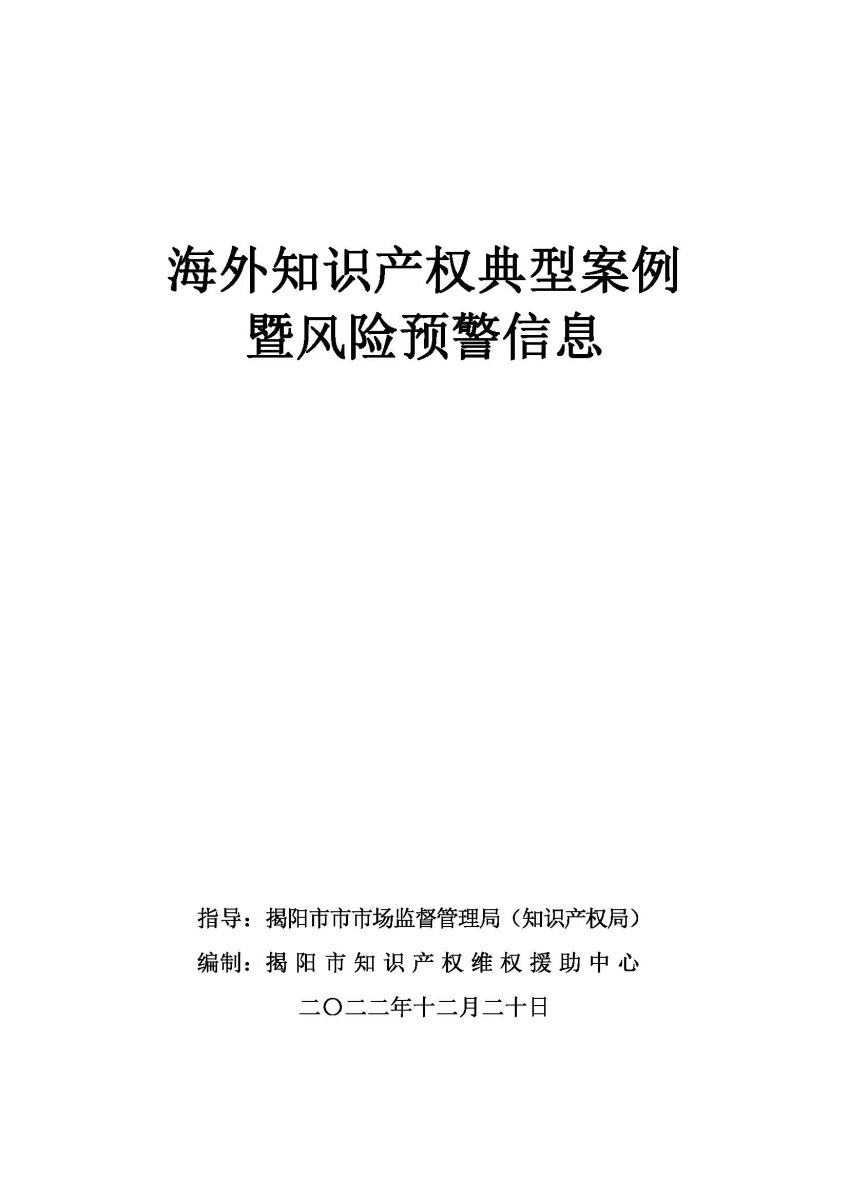 海外知識產(chǎn)權(quán)典型案例暨風(fēng)險預(yù)警信息