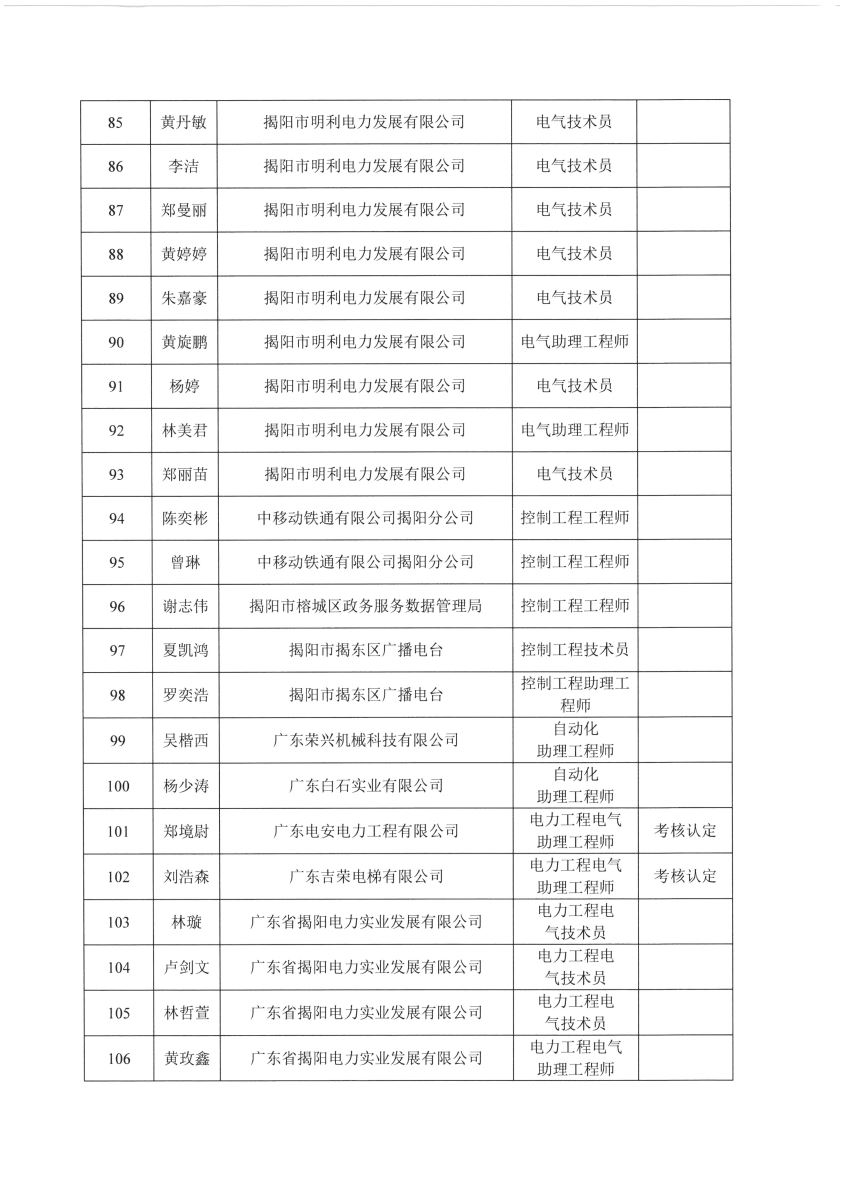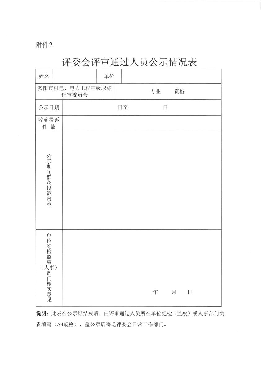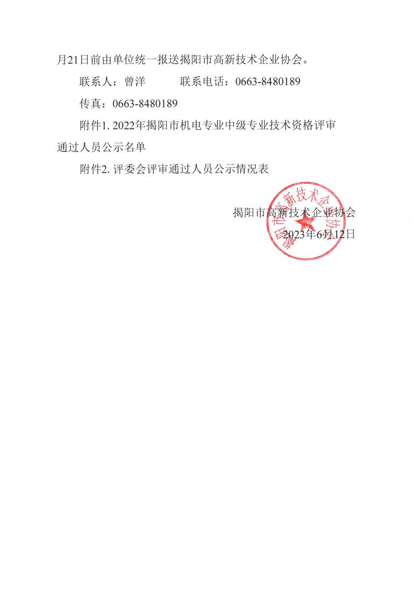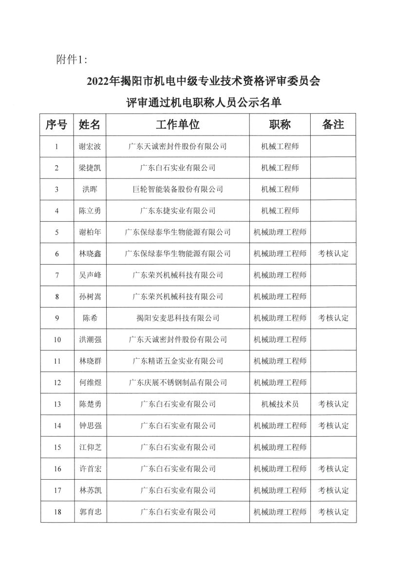 關于對2022年揭陽市機電、電力專業(yè)技術資 格評審通過人員名單進行公示的通知