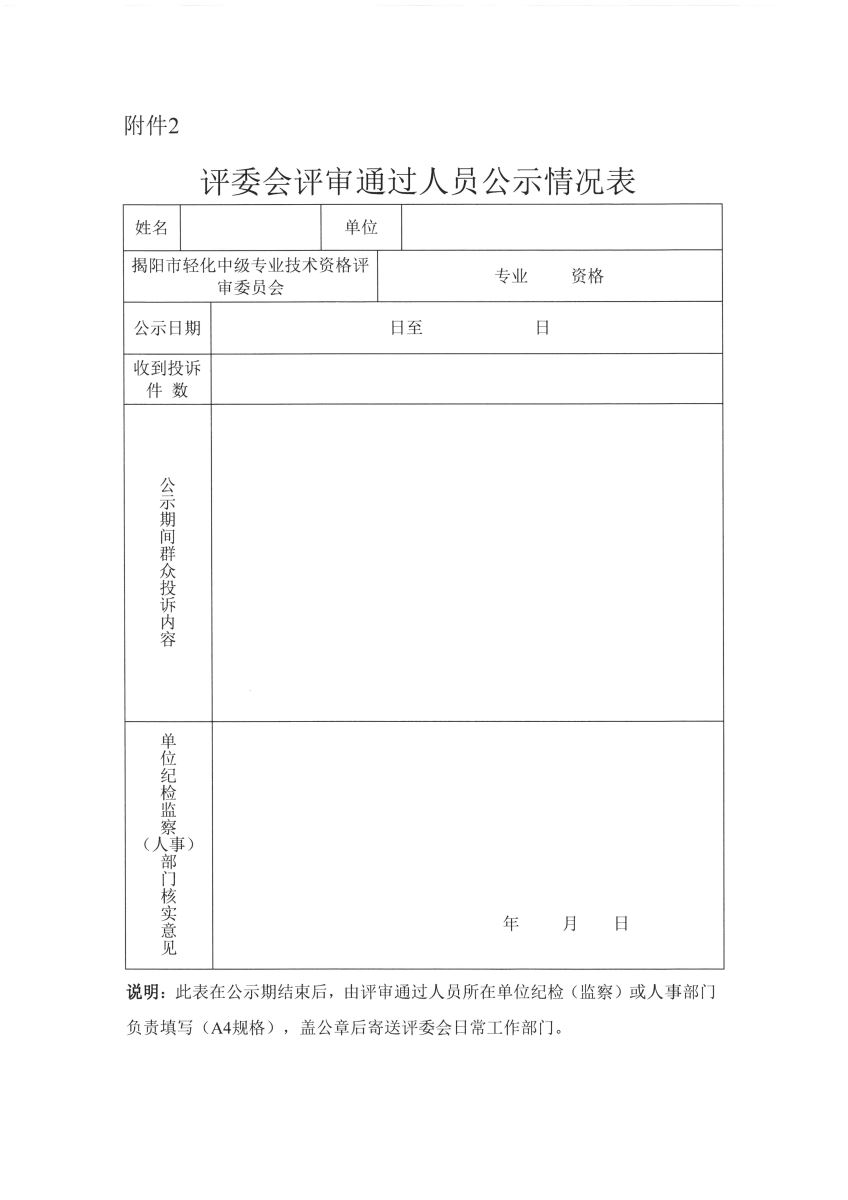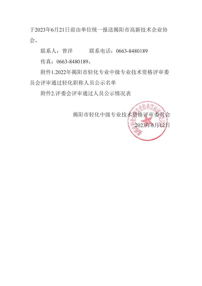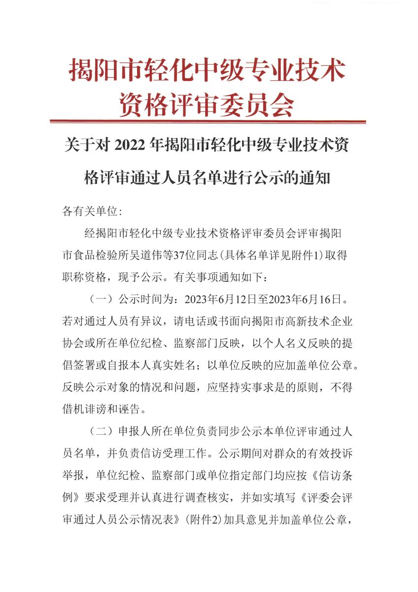 關(guān)于對2022年揭陽市輕化中級專業(yè)技術(shù)資格評審通過人員名單進行公示的通知