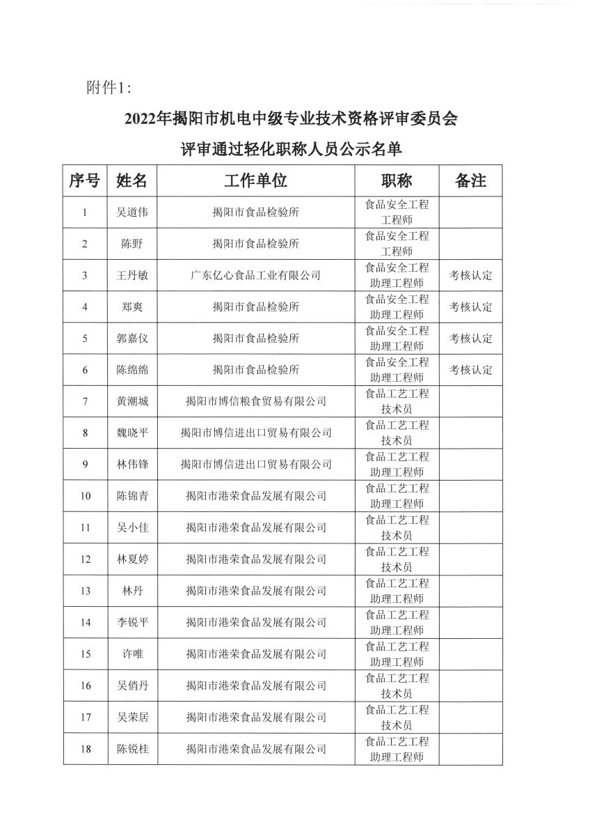 關(guān)于對2022年揭陽市機電、電力專業(yè)技術(shù)資 格評審通過人員名單進行公示的通知