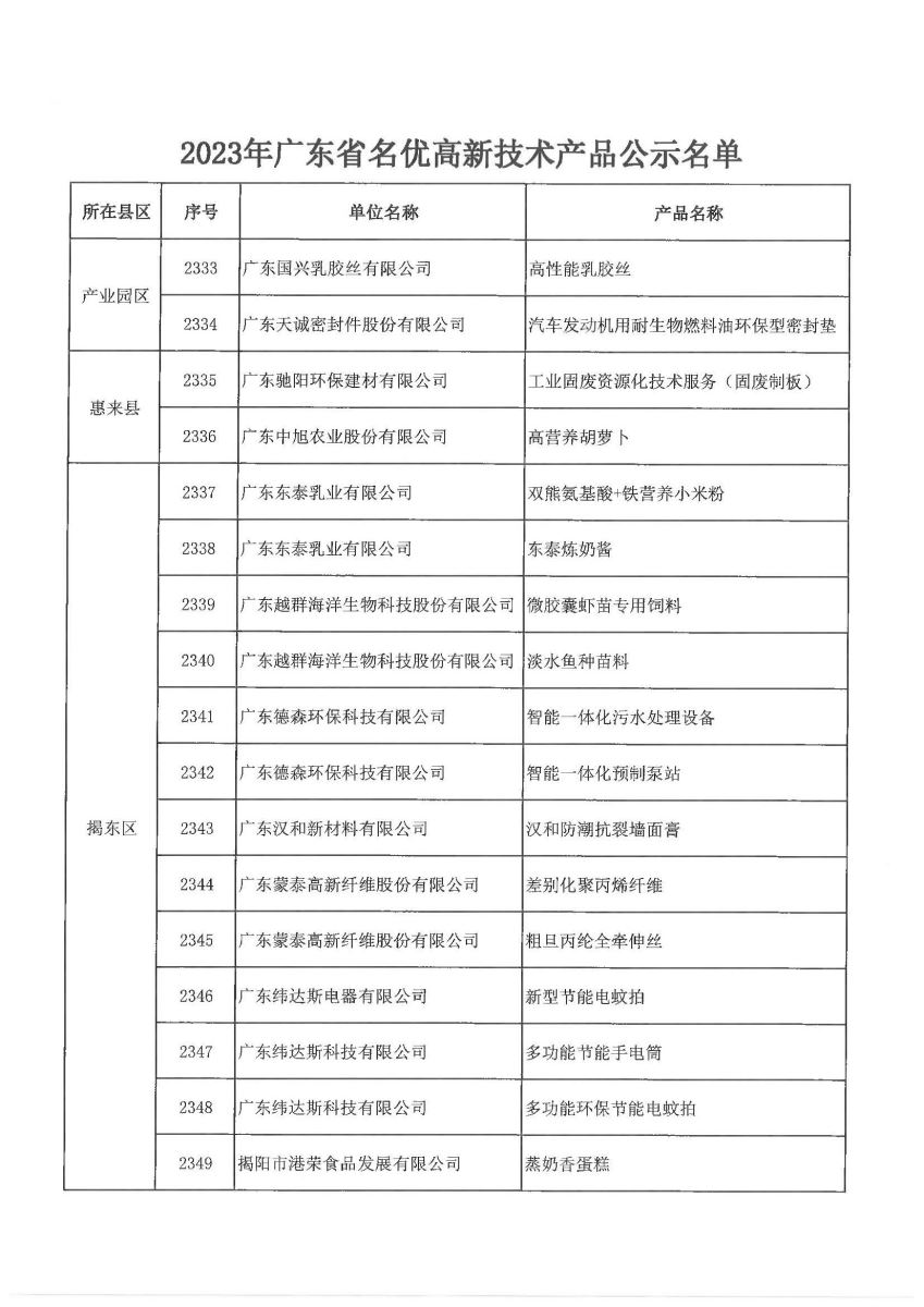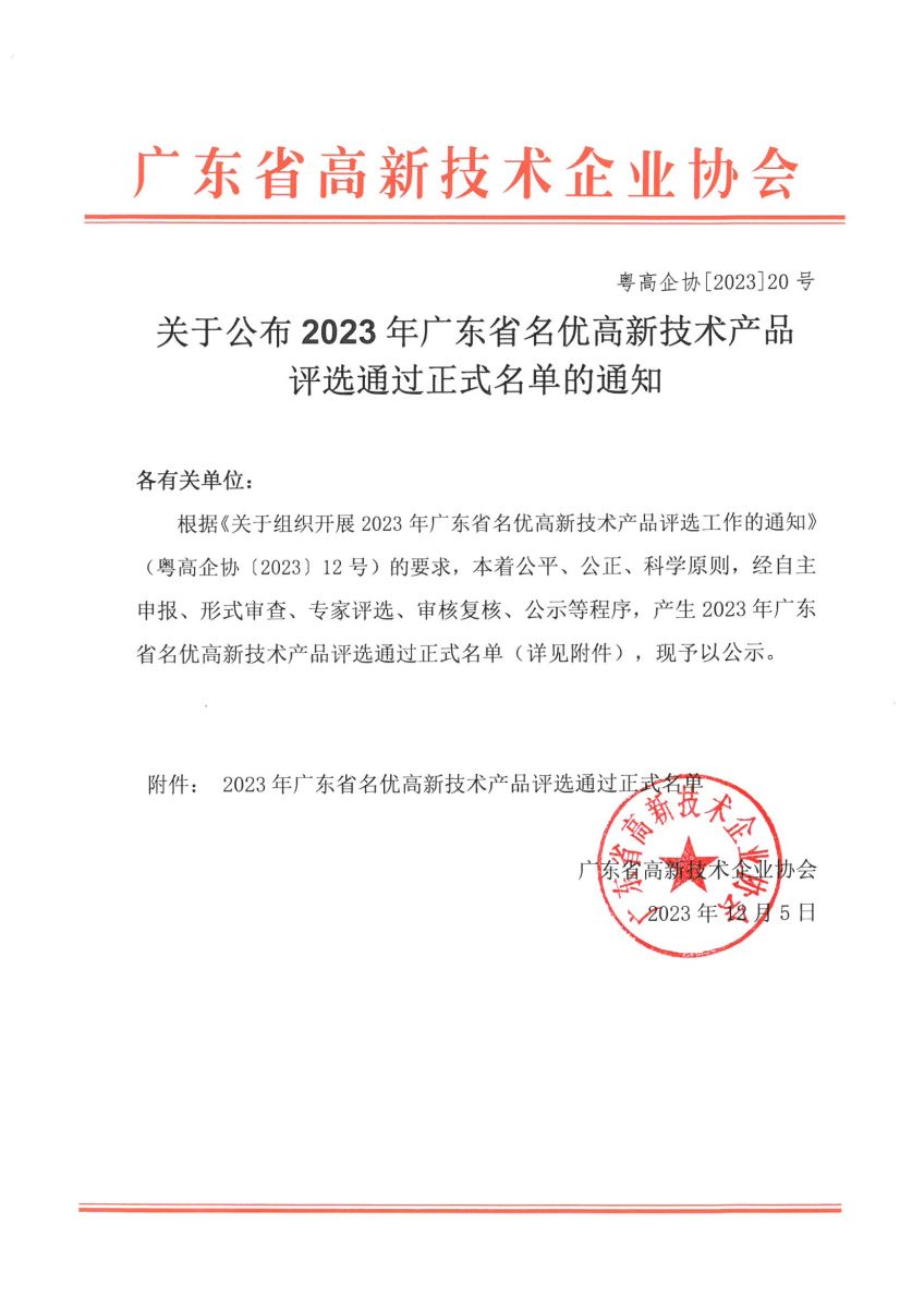 關(guān)于公布2023年廣東省名優(yōu)高新技術(shù)產(chǎn)品評(píng)選通過正式名單的通知