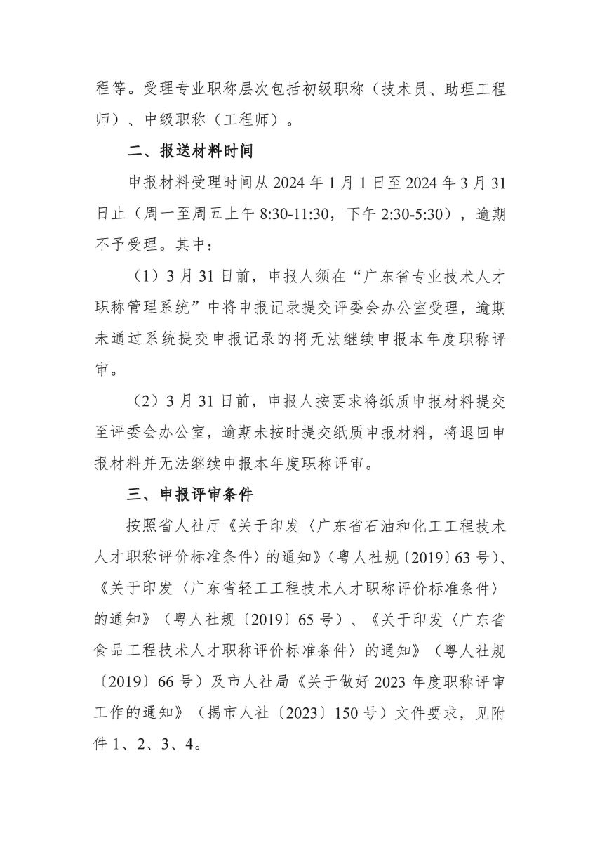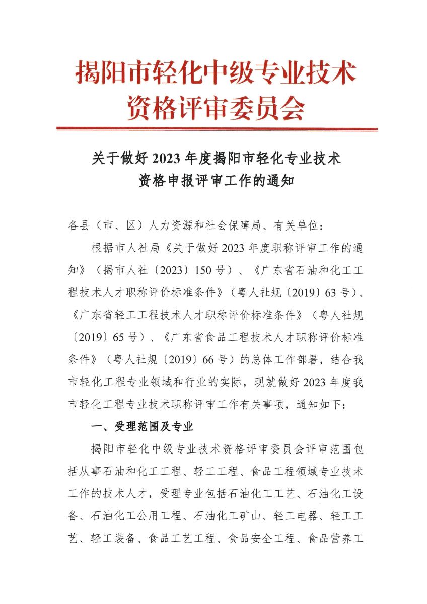 關于做好2023年度揭陽市輕化專業(yè)技術資格申報評審工作的通知