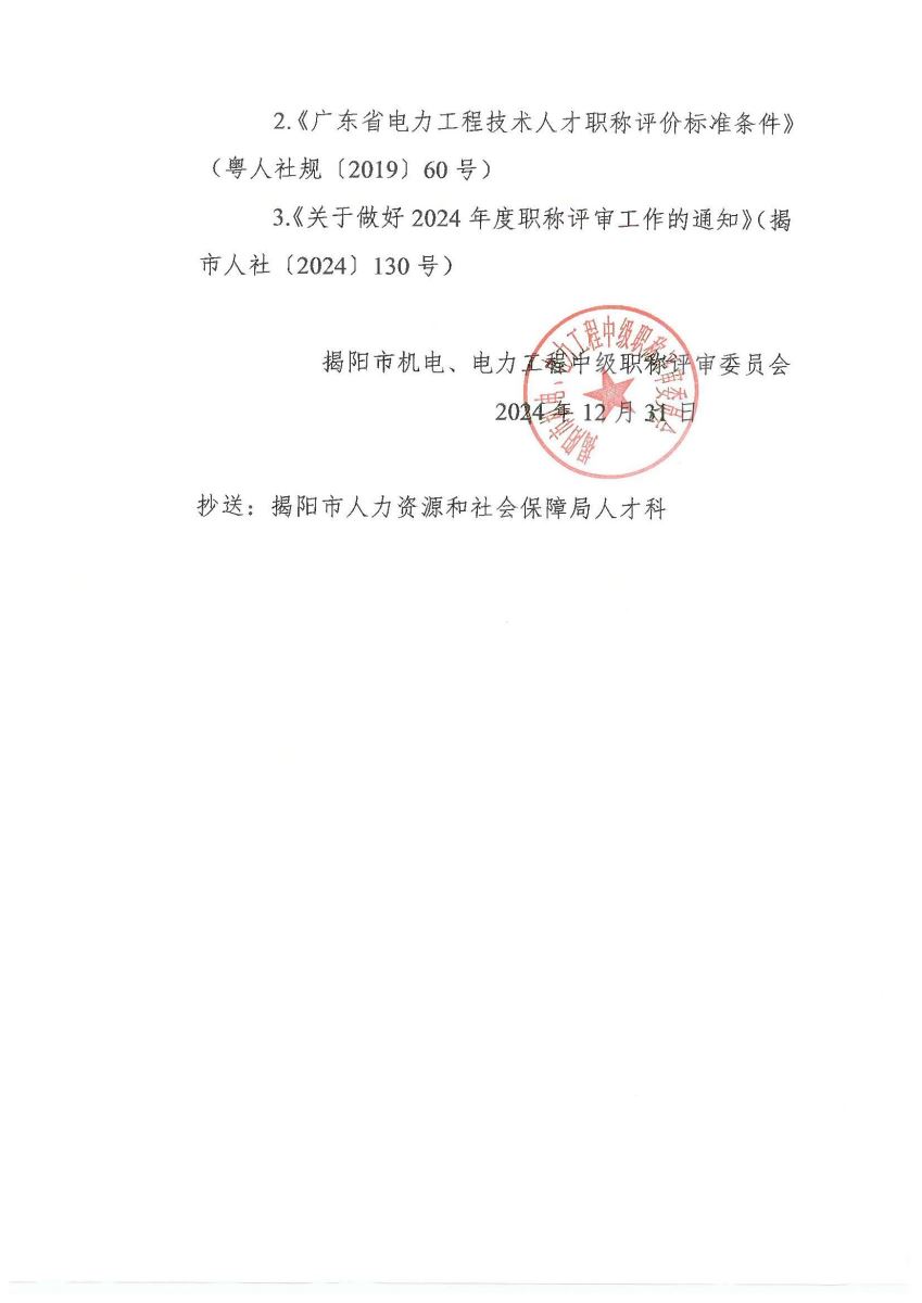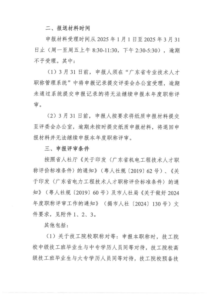 關于做好 2024 年度揭陽市機電、電力專業(yè)技術資格申報評審工作的通知
