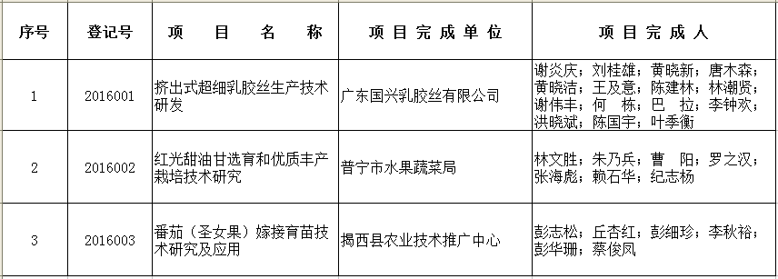 為加強科技成果管理,促進科技成果交流,避免重復(fù)研究,使科技成果盡快轉(zhuǎn)化為生產(chǎn)力,加速我市經(jīng)濟發(fā)展,對我市的科技成果進行登記。根據(jù)《揭陽市科學(xué)技術(shù)研究成果管理實施細則》《政府向社會轉(zhuǎn)移職能工作方案的通知》文件,市高企協(xié)會現(xiàn)公布申請2016年度我市登記的科技成果,如下表。