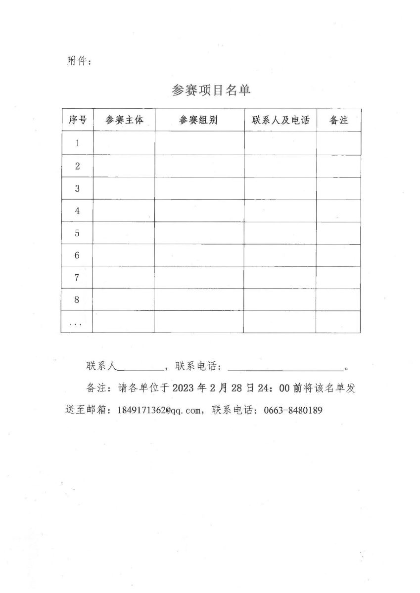 參賽項(xiàng)目名單